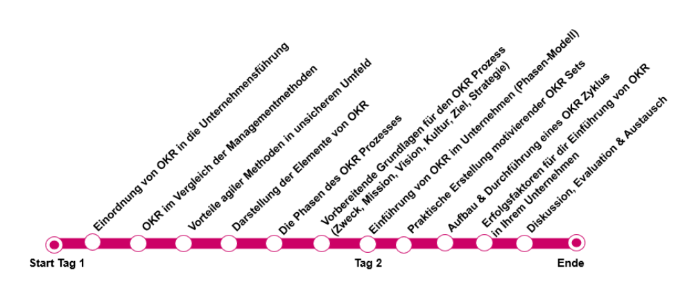 In diesem Seminar erlernen Sie die Grundlagen und Element der OKR Methode und erarbeiten in den Praxisübungen erste Umsetzungen für Ihr Unternehmen.
